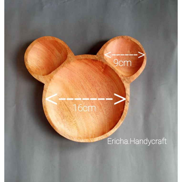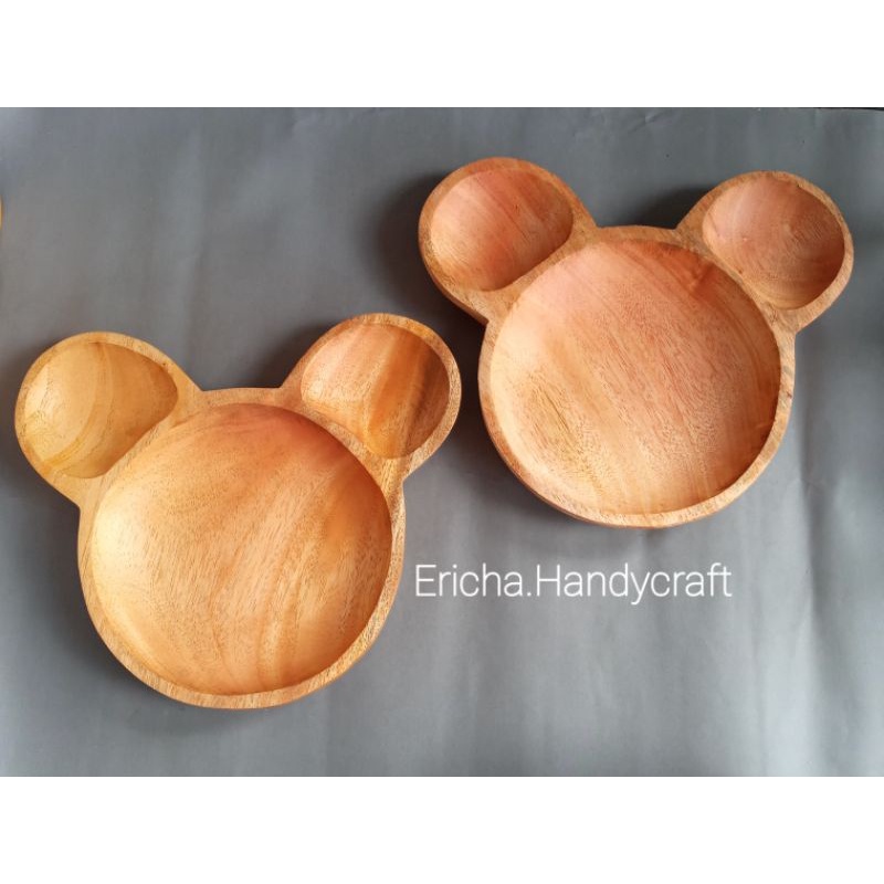 Piring kayu mahoni/piring makan kayu/piring mickey mouse