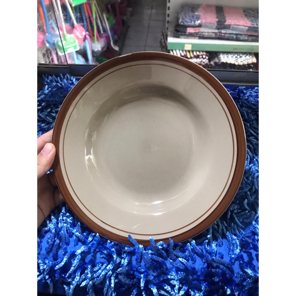 Piring makan keramik list coklat - Piring warteg