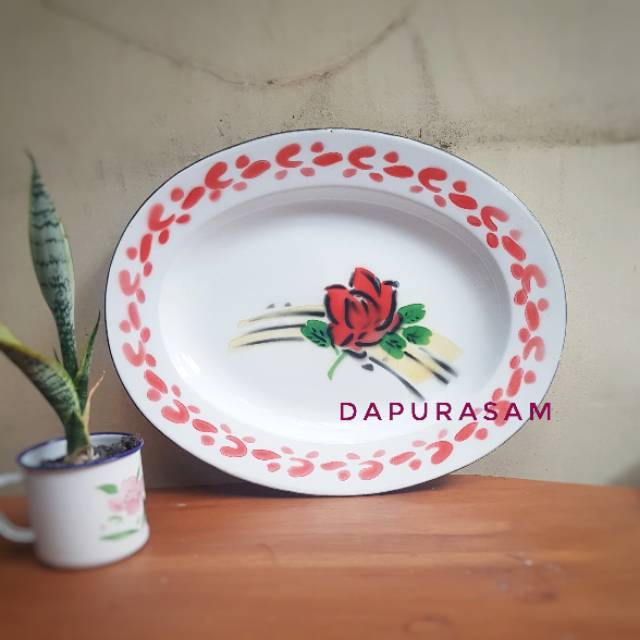 Piring oval Enamel 40cm / Lodor Jadul Vintage NOS