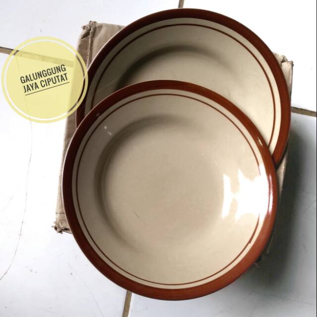 Piring / piring makan / piring keramik lis coklat 6 pcs