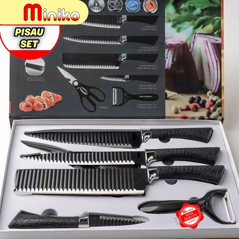 Pisau Dapur Set Stainlees 6 in 1 Pisau Set Talenan Pisau Dapur Super Tajam