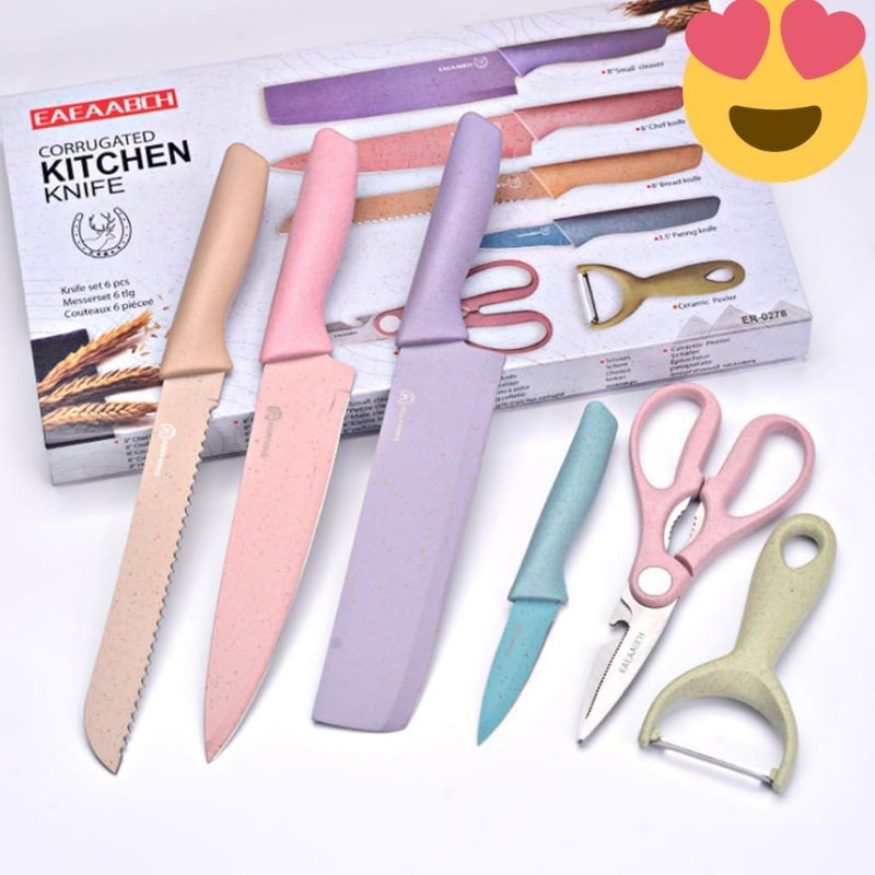 Pisau Jerami Set 6 in 1 - Evcriverh Knife Set - Pisau Set Jerami Color - Pisau Dapur 1 Set Bahan Stainless Steel - Pisau Set 6 in 1 BISA COD
