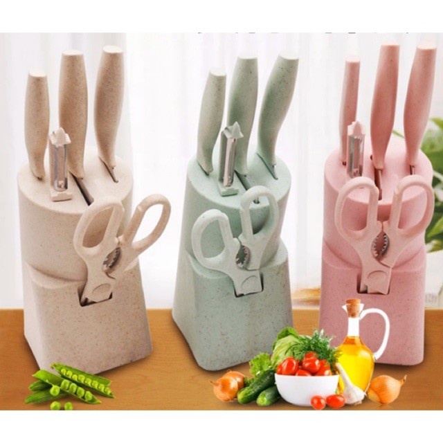 Pisau Set 6 in 1 Keramik/pisau set dapur/pisau potong+tempat pisau