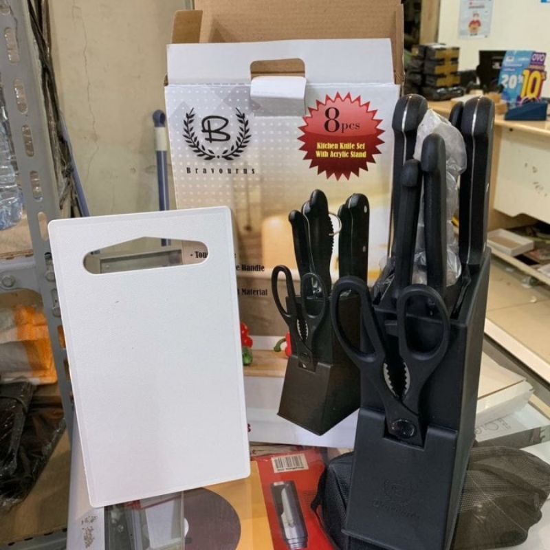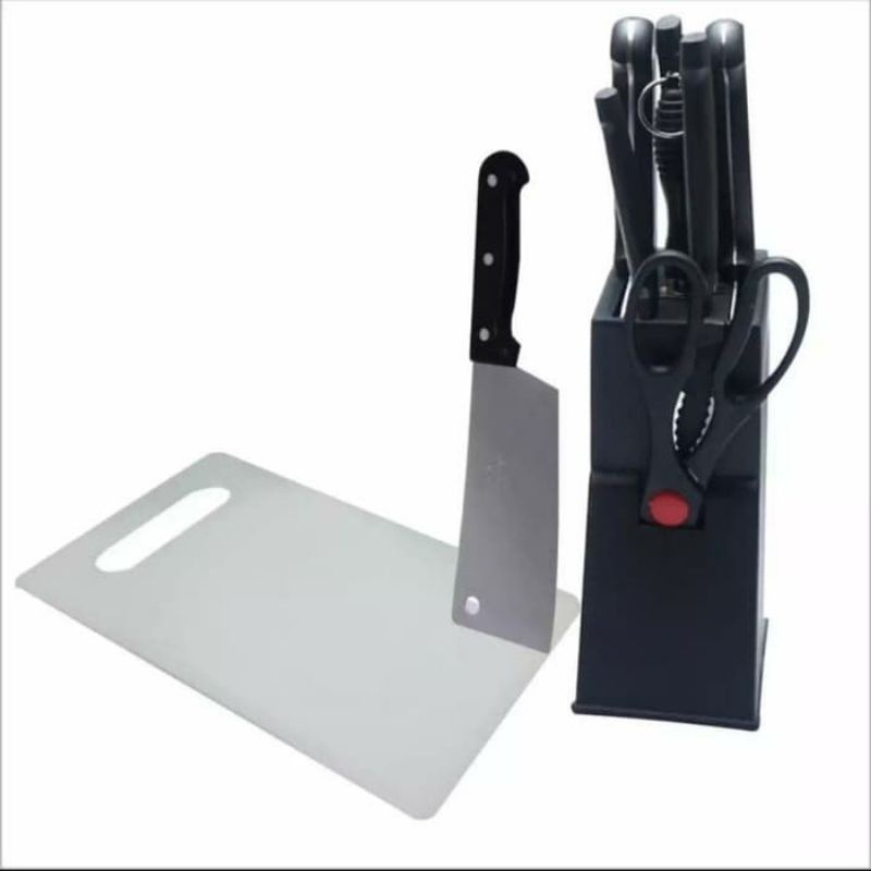 Pisau Set Box Hitam Stainless Daging Buah Sayur Multifungsi Pisau set 8 piso dapur gunting
