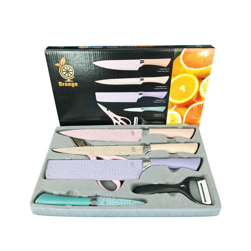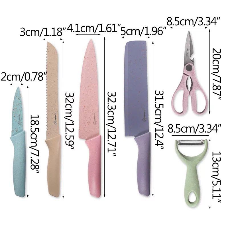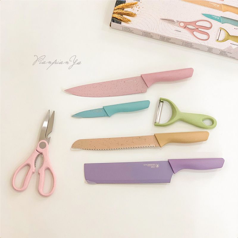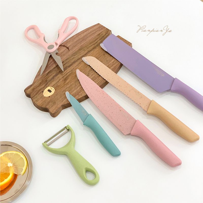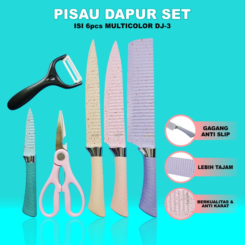 Pisau set 6 pcs Pisau Set Stainless Dilapis Anti Lengket Peralatan Masak Pisau Dapur Pisau Aesthetic Stainless Pisau Warna DJ-1 DJ-3