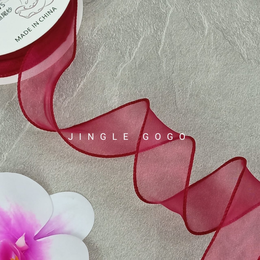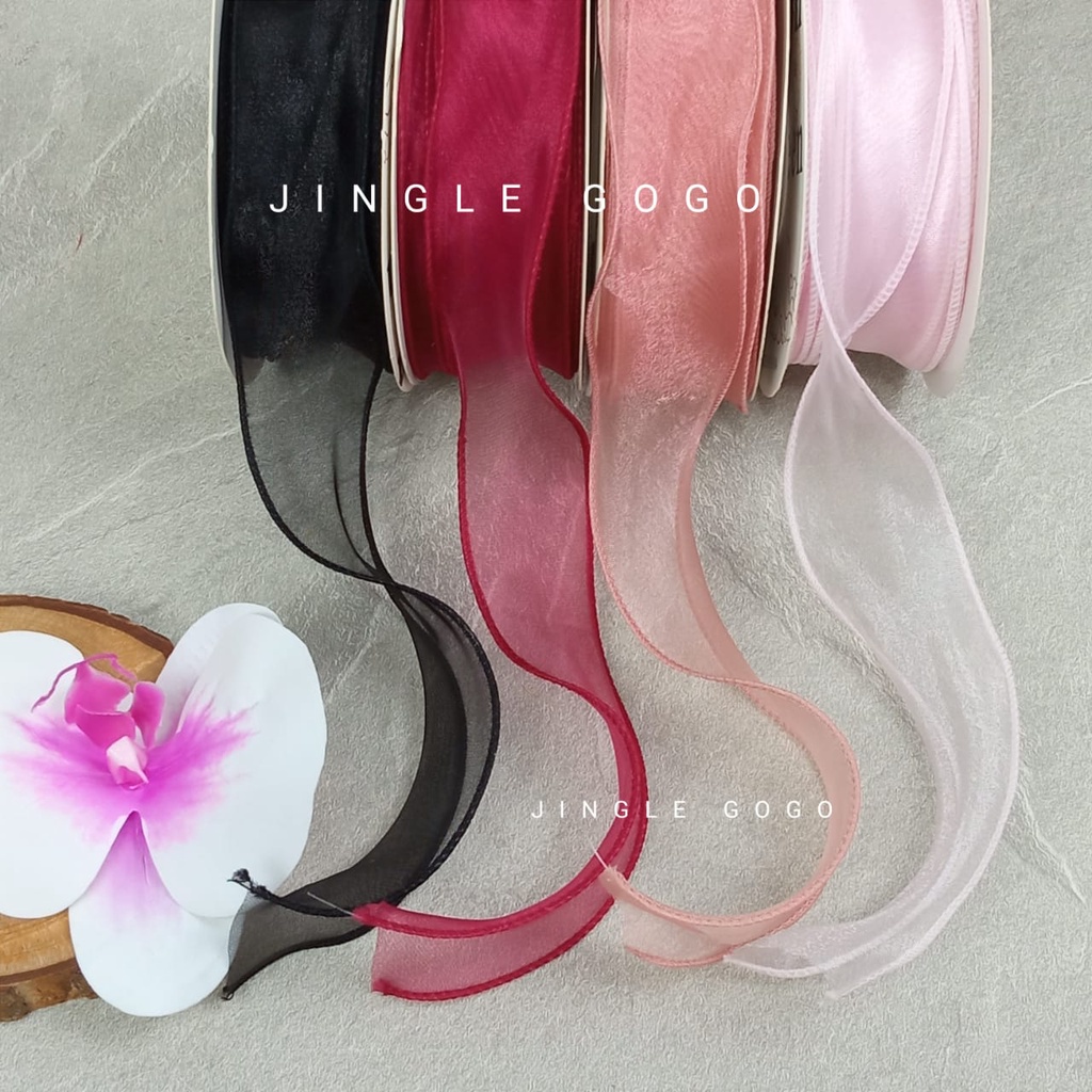 Pita Buket Bunga potongan per yard (92cm) Shiffon Organza Pink Hitam Merah Emas Perak Gold Silver Tali Bunga Pita Kado Ikat Bouquet Bahan Craft & Souvenir