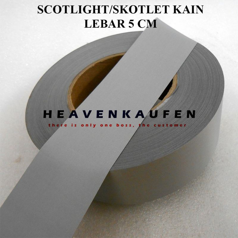 Pita Skotlet Lebar 5 cm grade A Meteran abu silver polos Kain Jaket baju rompi safety Scotlite Scotlight Reflective 2" in inch inchi 50mm 5cm fosfor tape reflektor