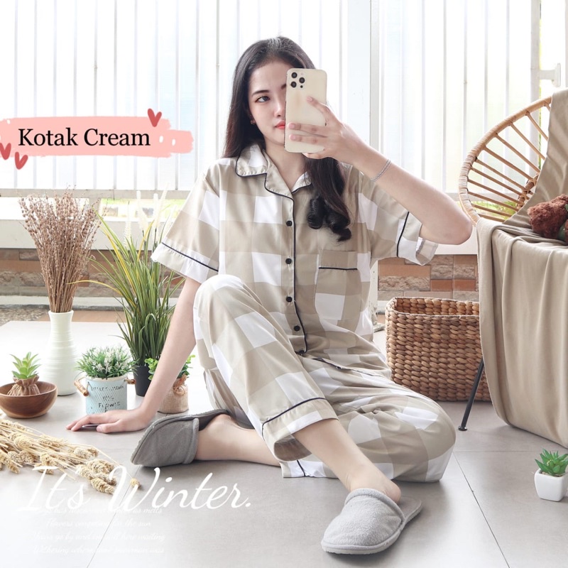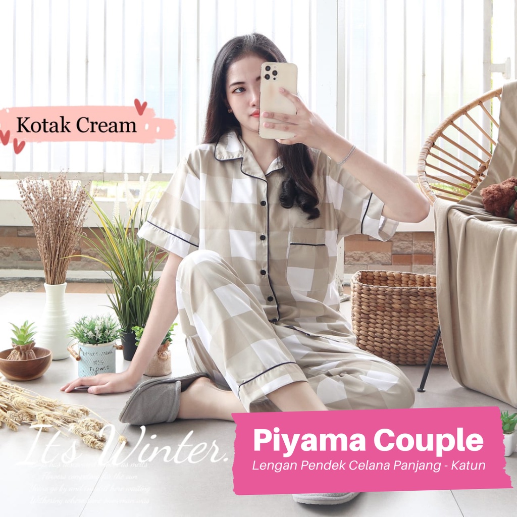 Piyama Couple Korea Aesthetic Baju TIdur Setelan Wanita Dewasa Remaja All size dan Jumbo Kotak BB Garis Garis