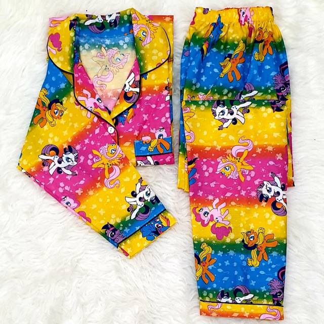 Baju Tidur Piyama Wanita / Cewek Katun Jepang Motif Rainbow Pony All Size L Varian CP, PP