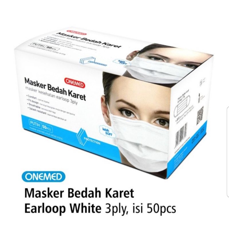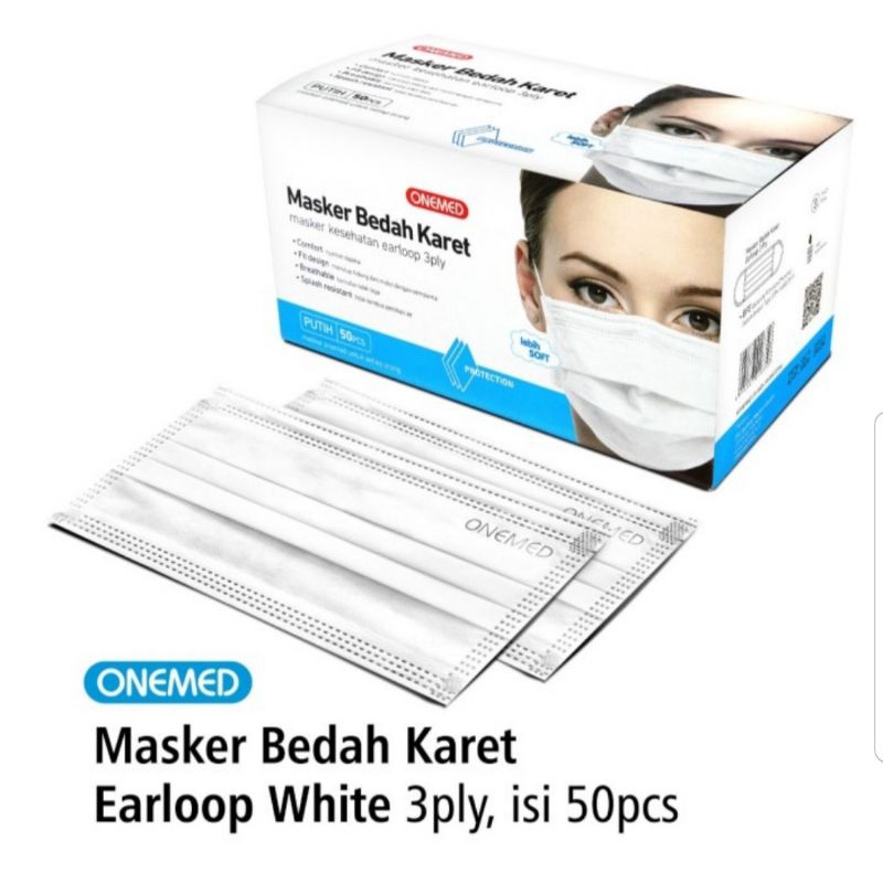Masker Bedah Karet Onemed Putih Box isi 50pcs / Masker medis onemed