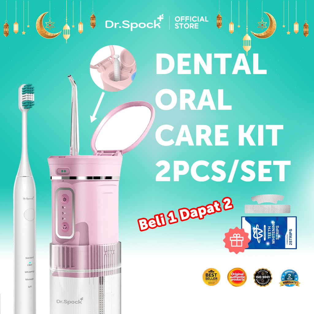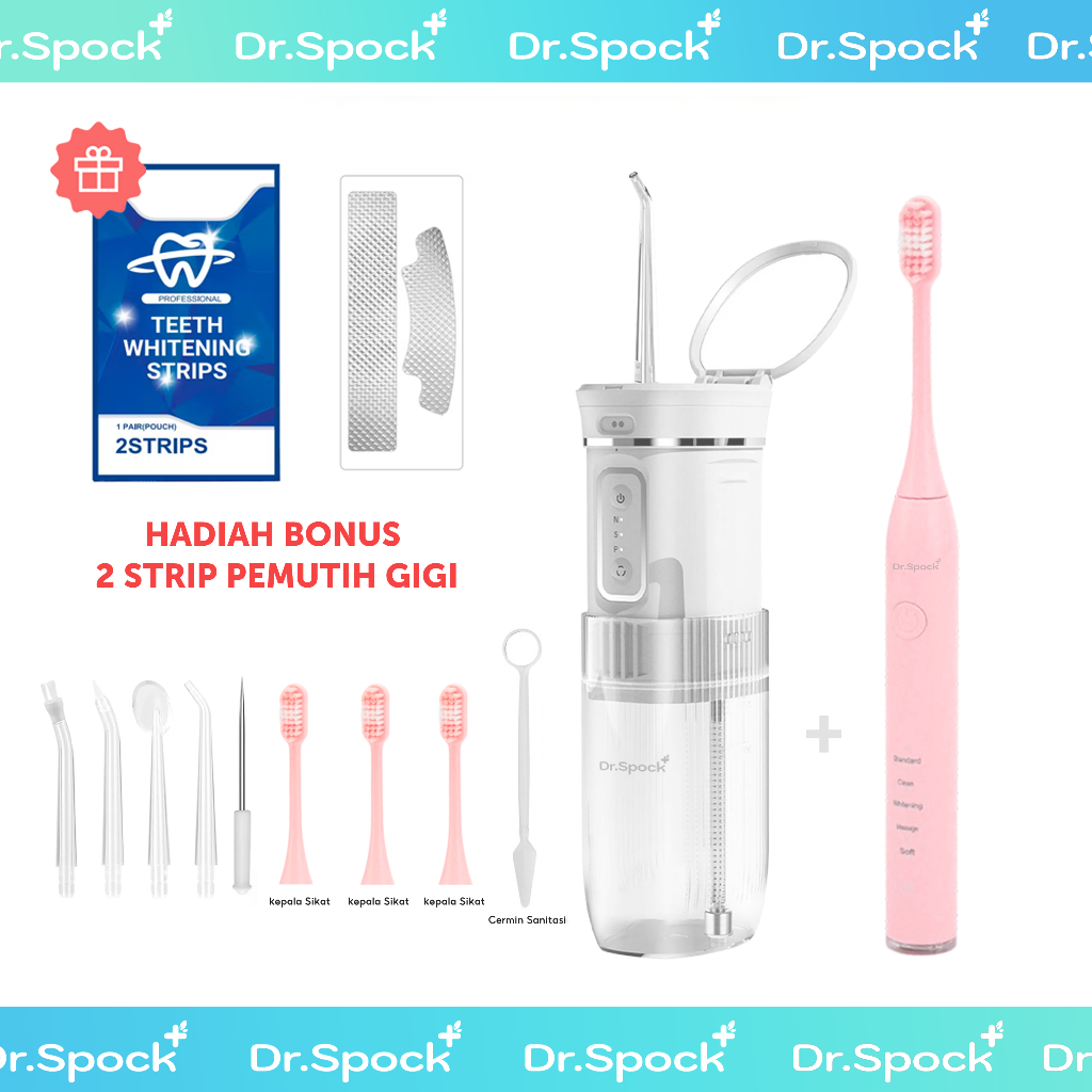 Dr.Spock 2 in 1 Sikat Gigi Elektrik Sonic + Water Flosser Dental Irrigator, Deep Cleaning, Perlindungan Gusi dan Pemutihan Gigi Ringan - Cocok untuk Keluarga