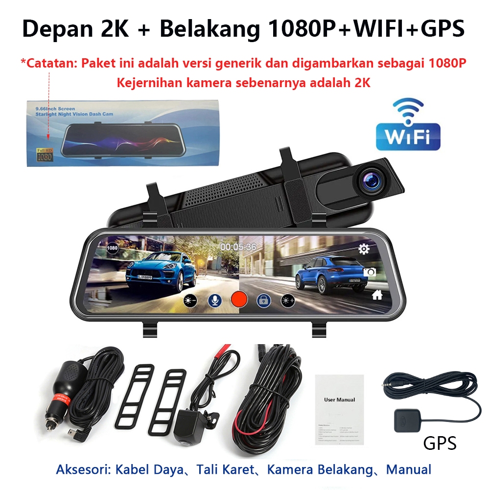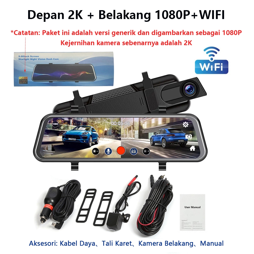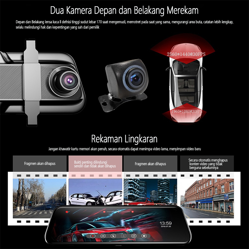 Acroder Dashcam Mobil 10 Inch IPS Touch Screen 2K WiFi Night Vision Dual Lens Loop Recording G-Sensor