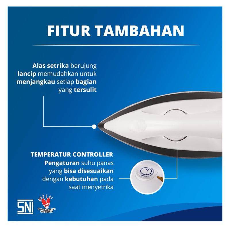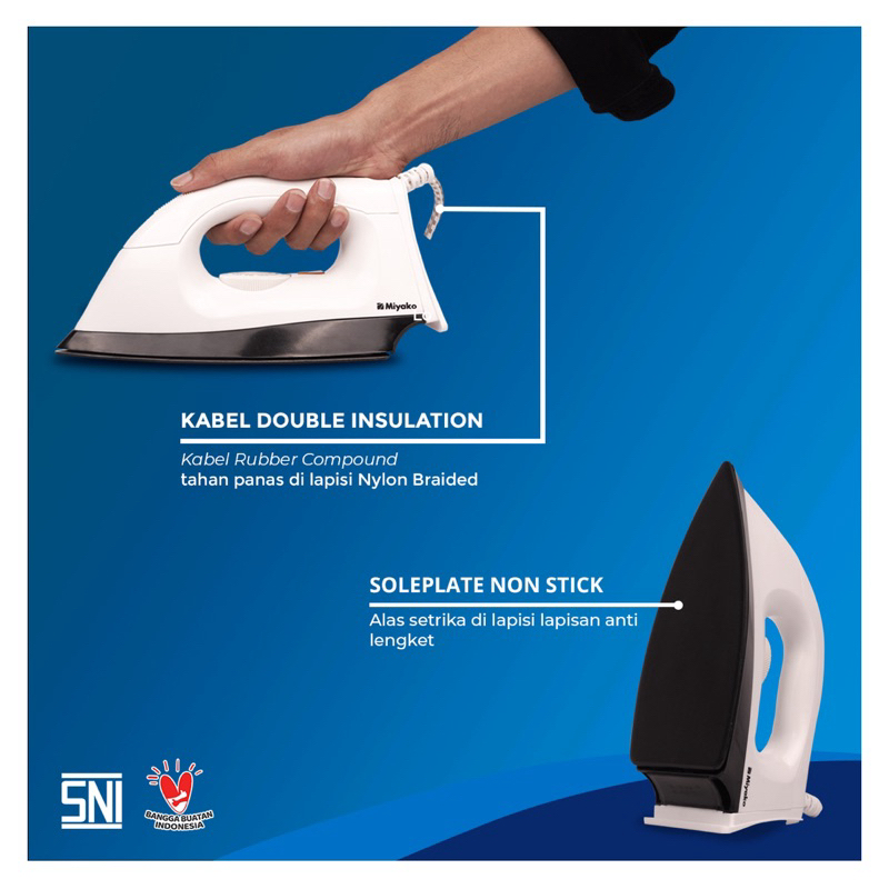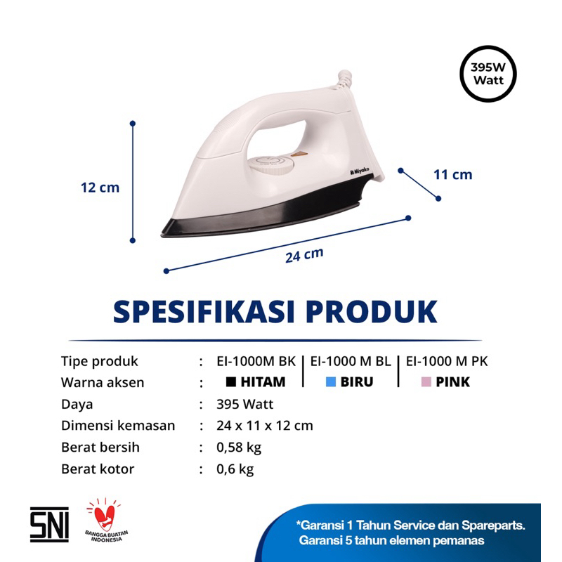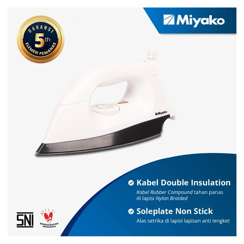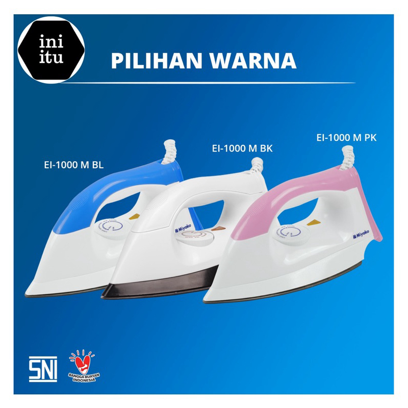 [ Miyako ] Iron Dry / Setrika Miyako EI-1000 M - Non Sticky Anti Lengket - Pink / Biru / Putih Garansi resmi