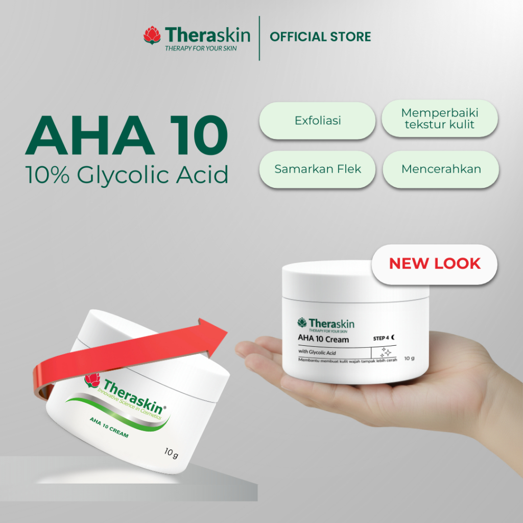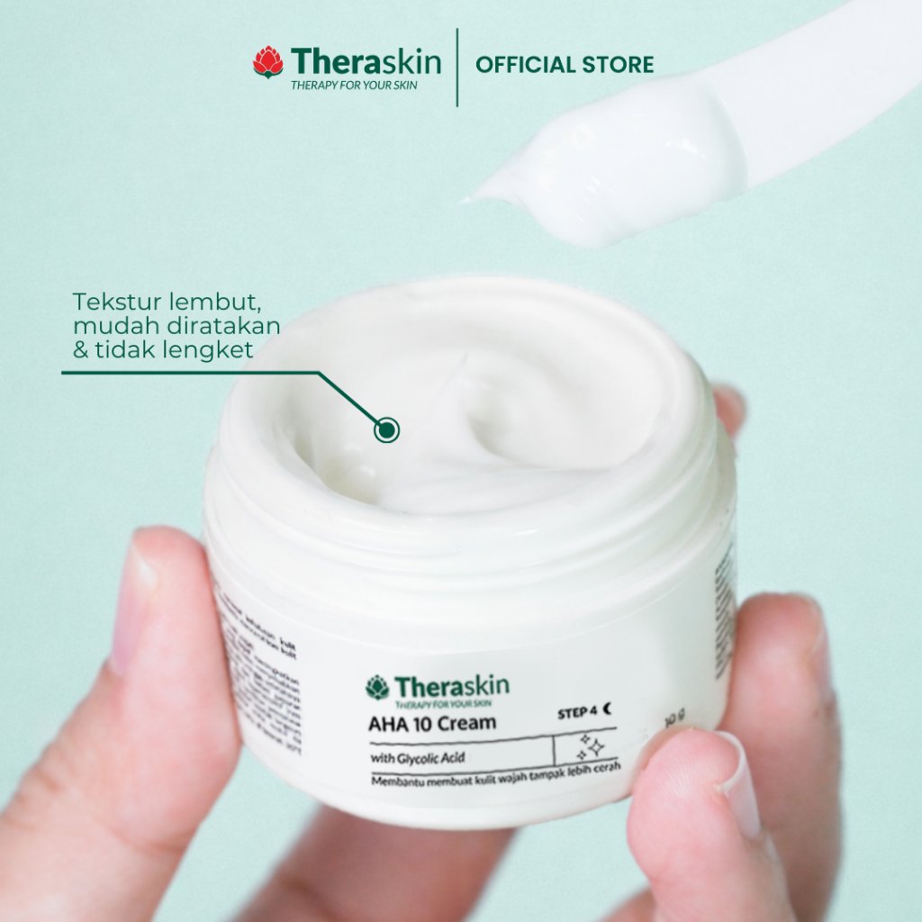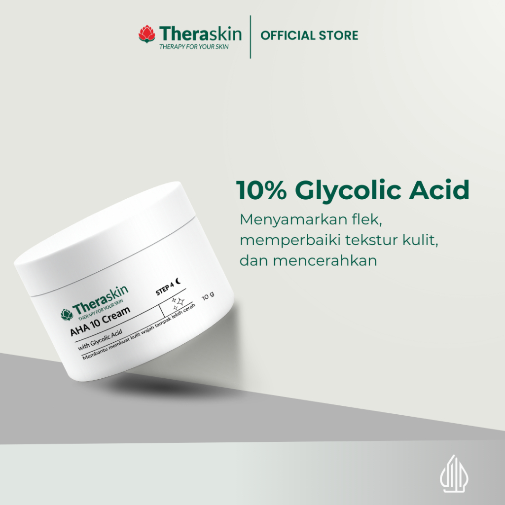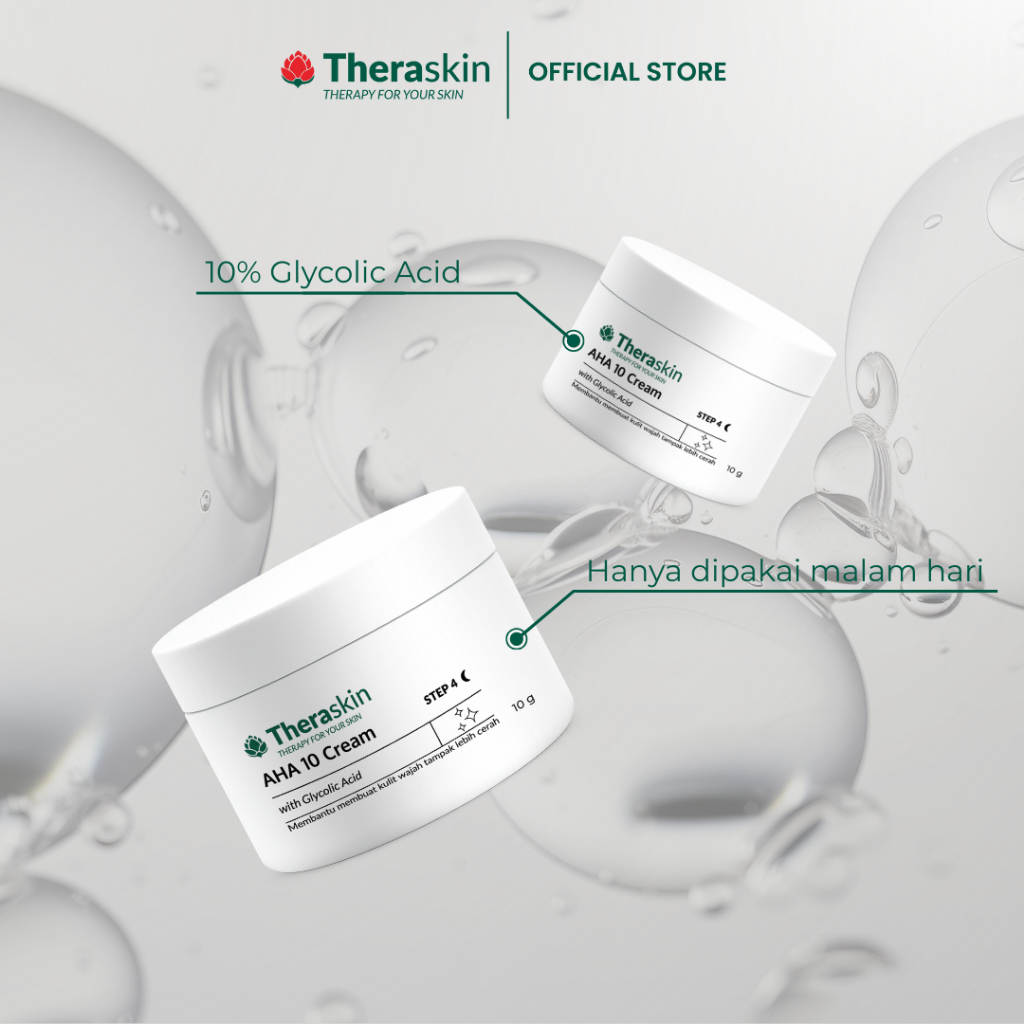 Theraskin BPOM AHA 10 Cream – Krim Malam Glycolic Acid 10% untuk Mengeksfoliasi, Mencerahkan, & Menyamarkan Flek Hitam Kulit Kombinasi/Berminyak