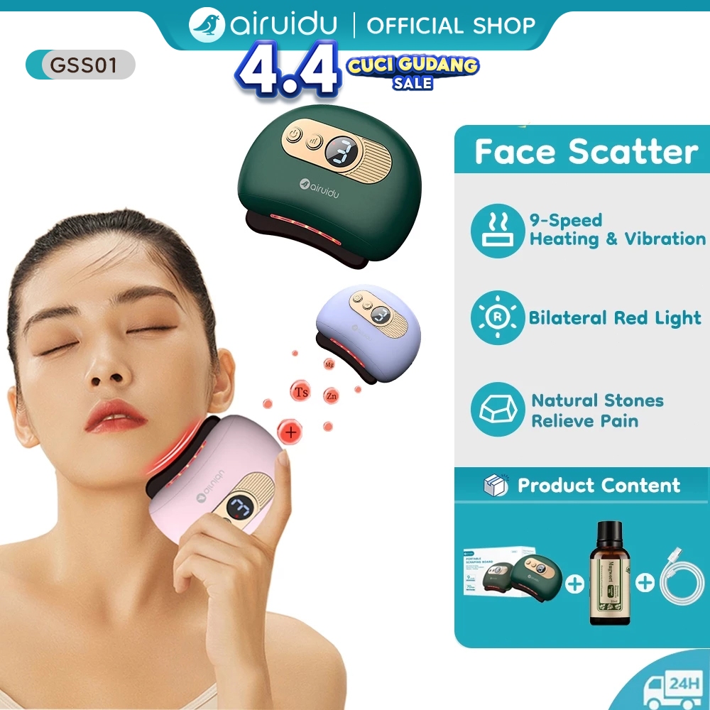 Airuidu GSS01 Kosmetik Gua Sha Electric LED Alat Pijat Elektrik Face Massage Electric 9 Vibration & Heating Alat Pijat Wajah