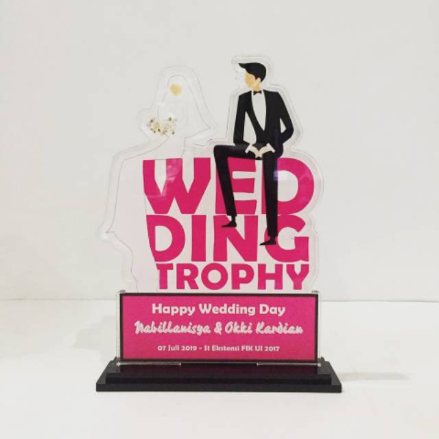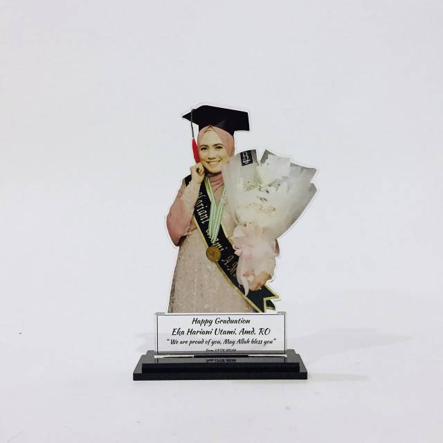 Plakat kado pernikahan , plakat akrilik wisuda, plakat custom, plakat piala atau trophy