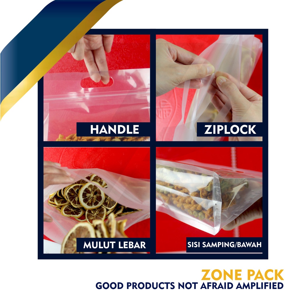 Plastik 8 Sisi Buram 26x19 cm | Frosted Pouch | Plastik Buram 8 Sisi Dengan Pegangan dan Ziplock | Kemasan Snack