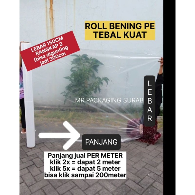 Plastik Gulung RANGKAP 2 Besar METERAN | Plastik Roll Bening Transparan | Plastik Cor Bangunan | Terpal Penutup | Alas Dasar Kolam Ikan | Plastik Dobel Rangkap 2 Lapis