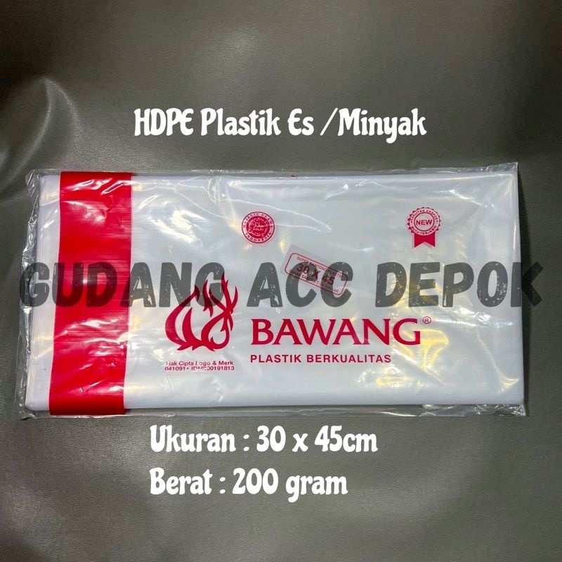 Plastik PE bawang / Plastik Es / Plastik Sayur / Plastik ikan hidup/ PLASTIK BENSIN MEREK BAWANG @200 gram PLASTIK ES PE Uk 25x40 30x45 35x50CM