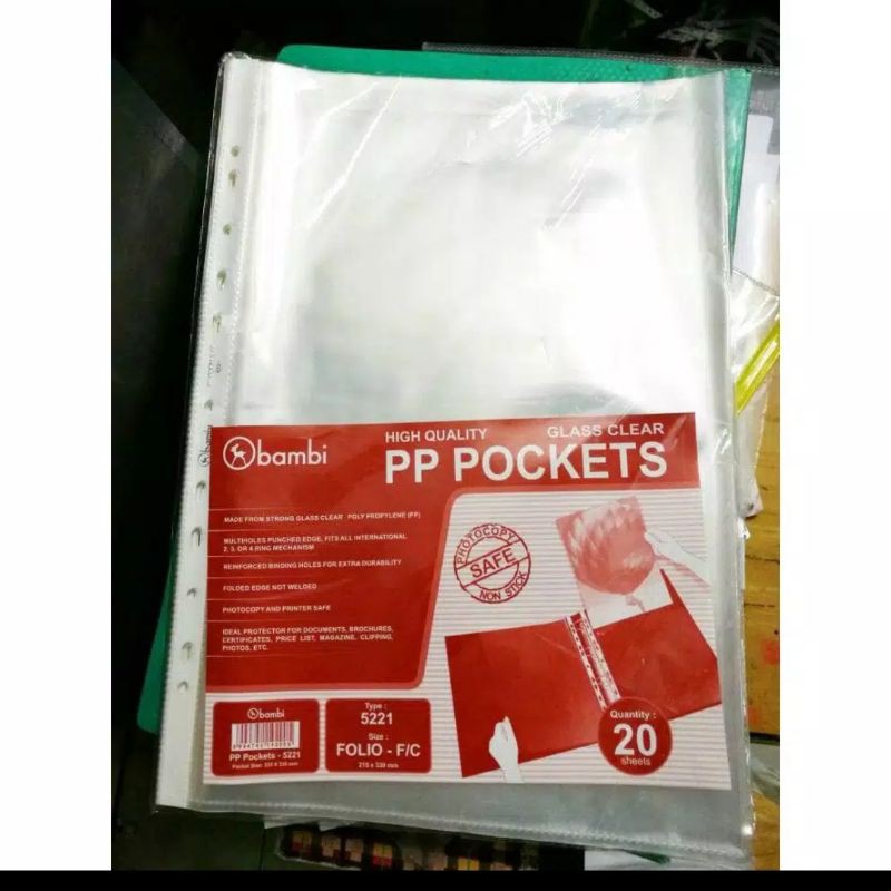 Plastik Pocket PP Transparan F4 Folio BAMBI 5221/Binder Sheet Protector Glass Clear F4 - 10pcs