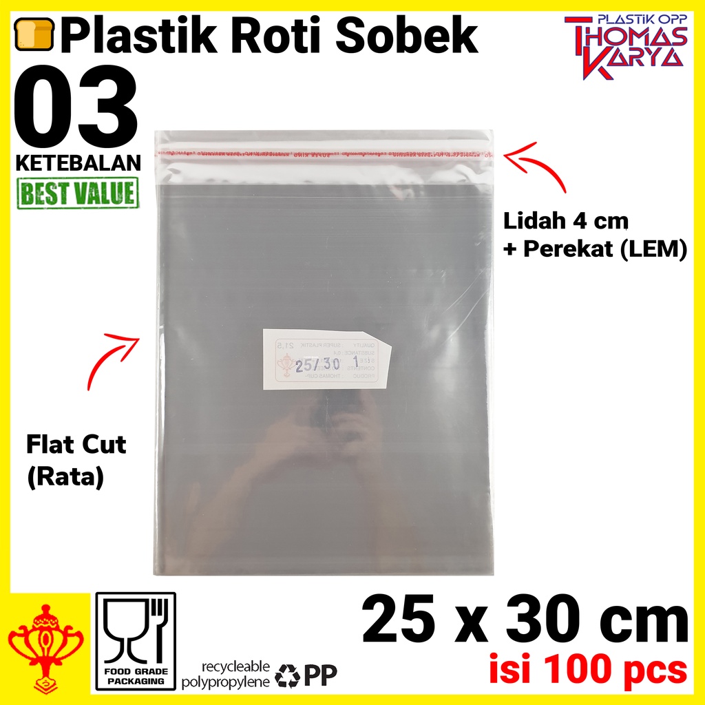 Plastik Roti Tawar 25x30 isi 100 OPP Seal Lem Perekat Kemasan Roti Sobek