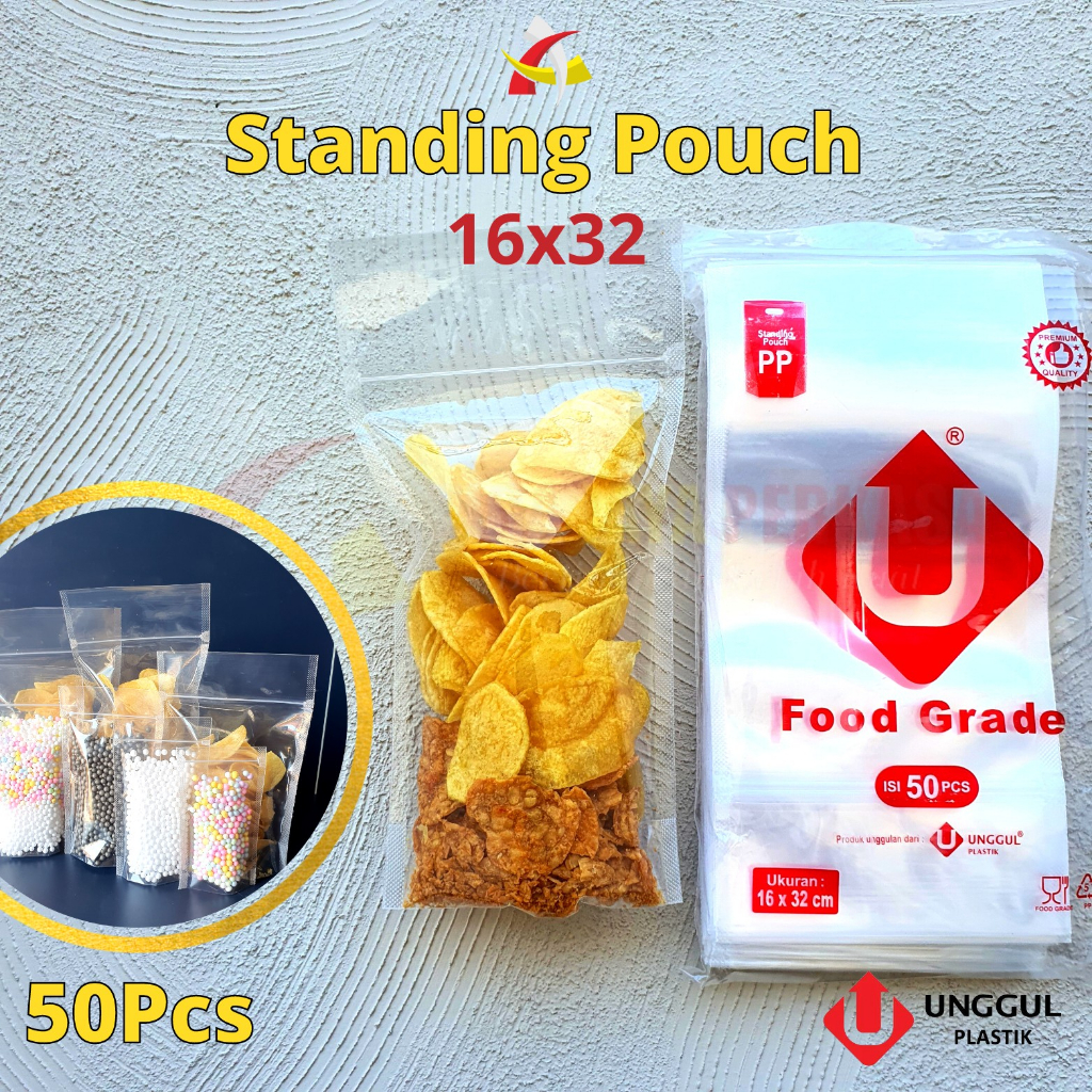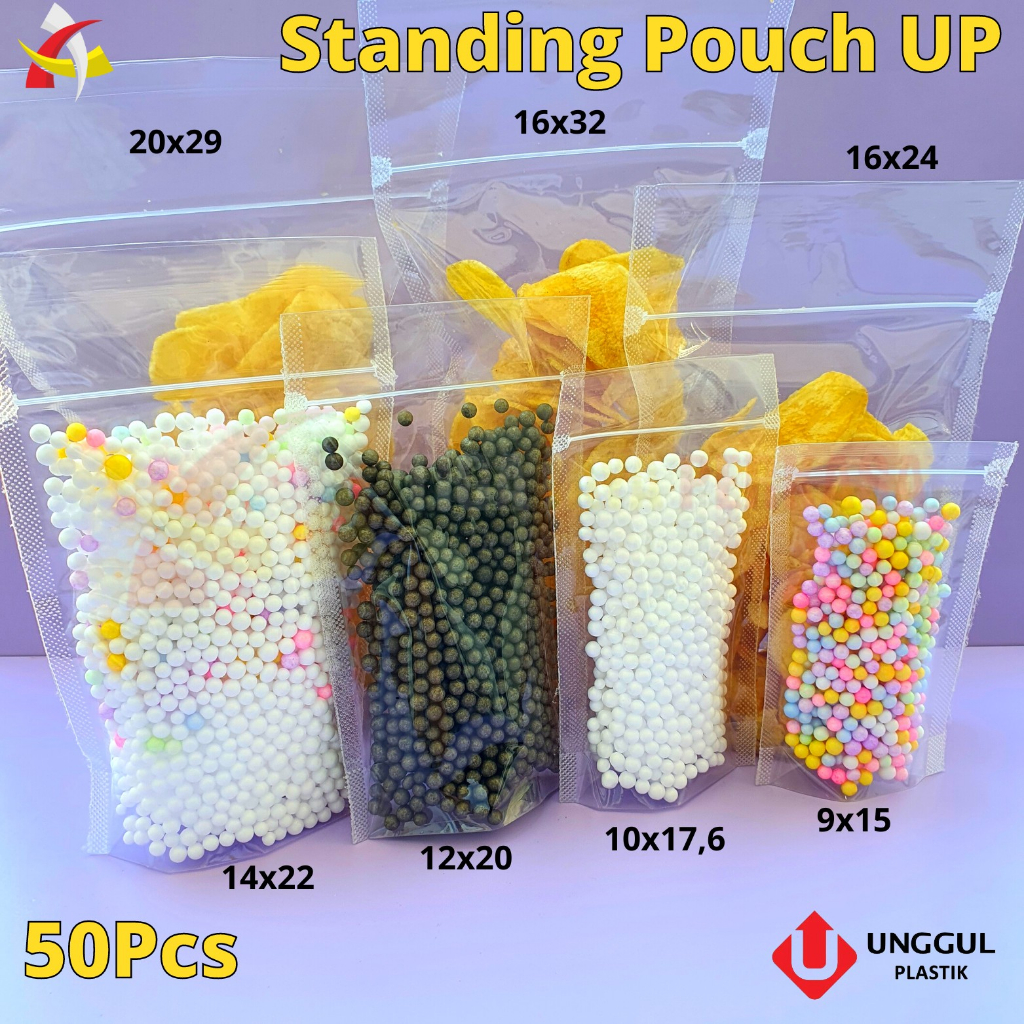 Plastik Standing Pouch 16x32 UP / Standing Pouch Bening 16x32 / Standing Pouch Transparan Mini 50pcs