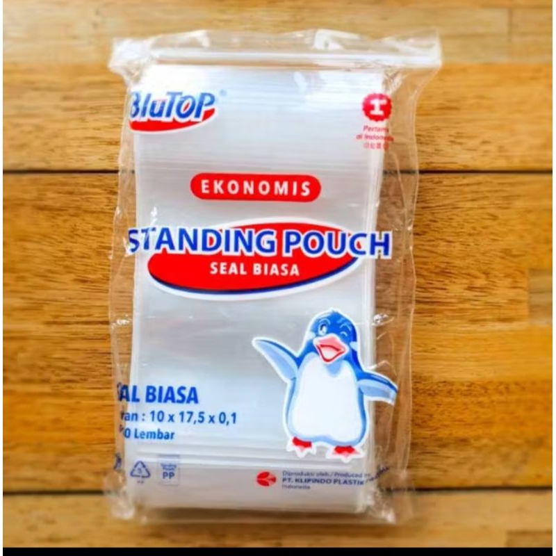 Plastik Standing Pouch Sablon Tulisan Karakter BluTop, Polos uk 10 x 17, Plastik Es Pouch, Plastik Berdiri Tegak