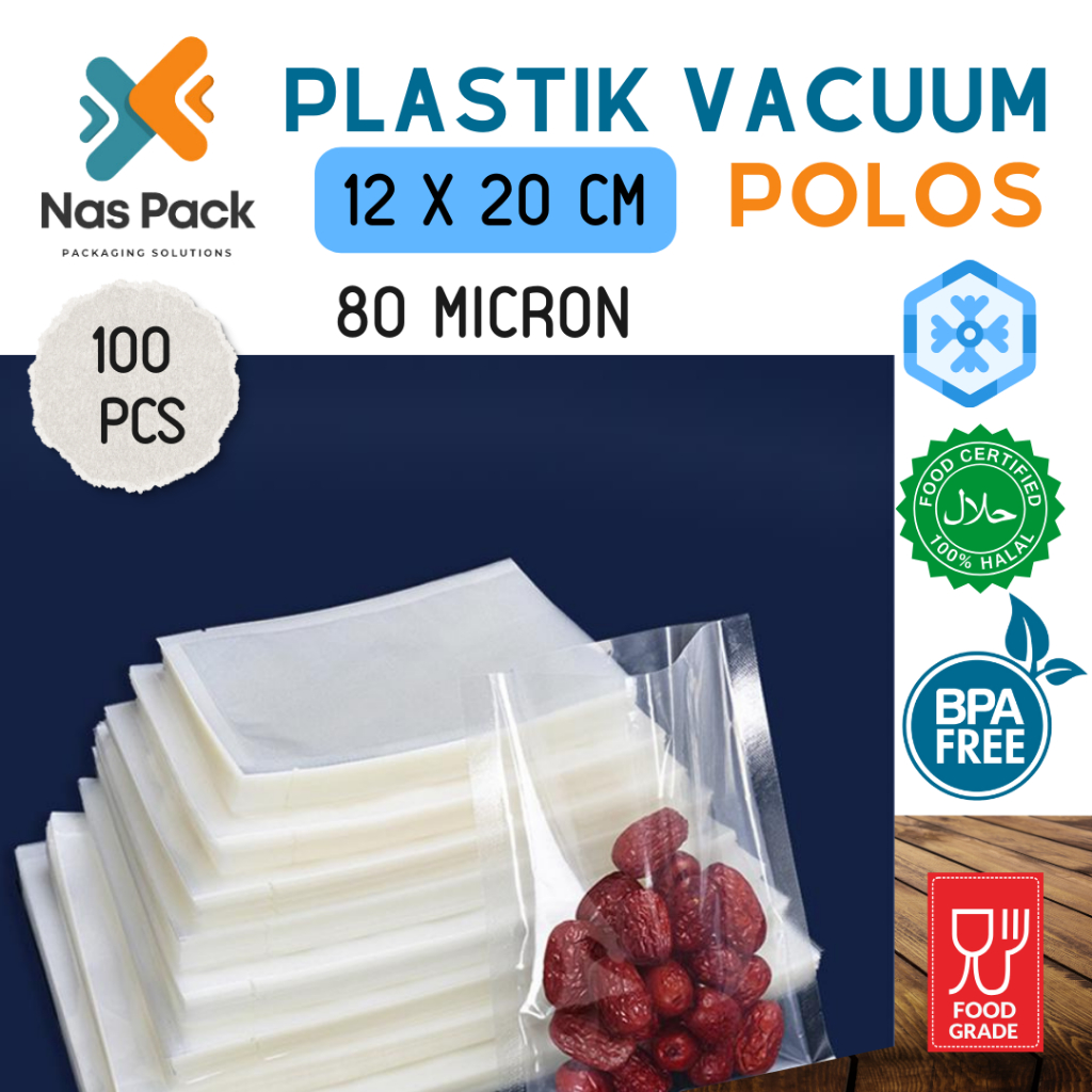 Plastik Vacuum Polos 12x20 cm 100 pcs /pack | Plastic vacum 12x20 | vakum 12x20 | Tebal 80 Micron