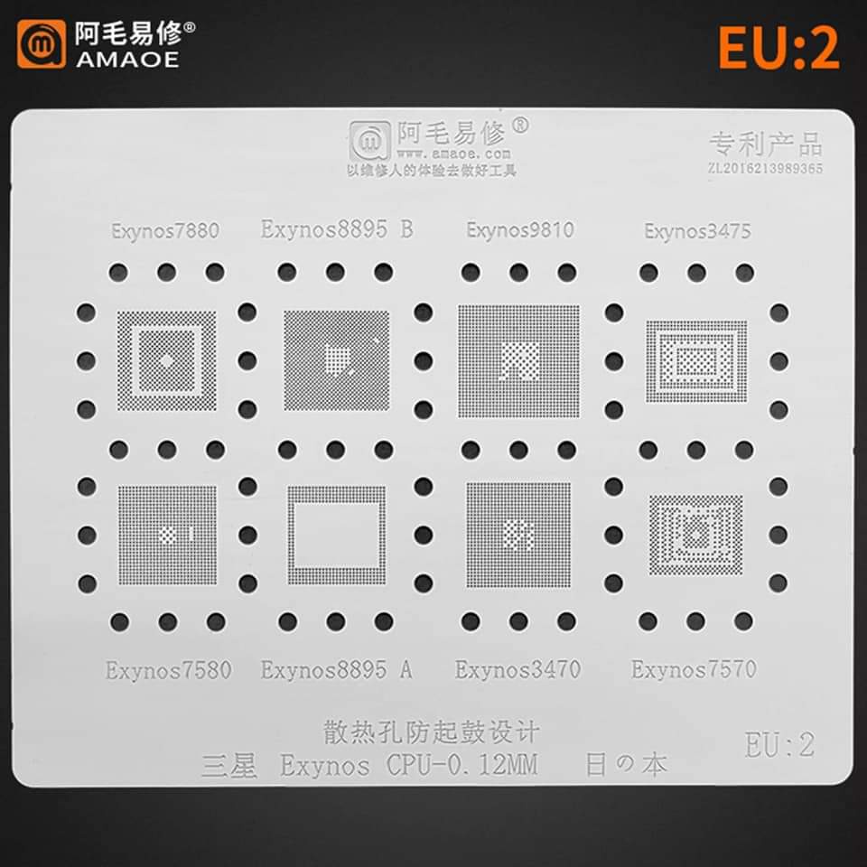 Plat EU:2 Amaoe / Plat Cetakan Ic Amaoe EU2 BGA Reballing Stensil SAMSUNG Exynos 7880/8895/9810/3475/7580/3470/7570 CPU RAM IC