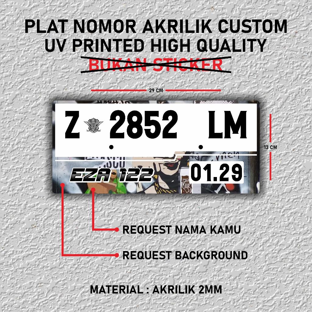Plat Nomor Custom Akrilik 2mm / Plat Nomor Keren / Plat Nomor Motor