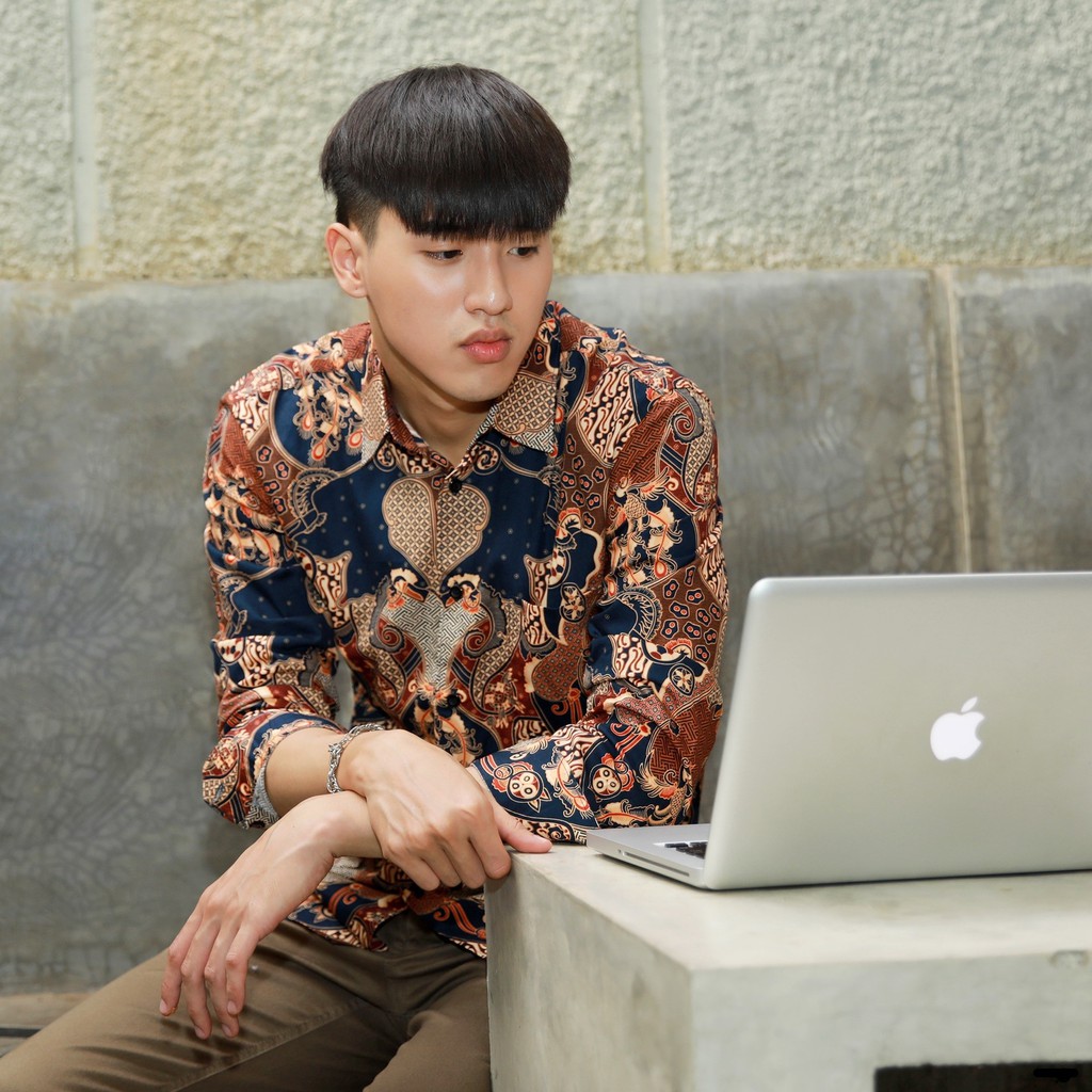 Platini Kemeja Batik Pria Lengan Panjang Katun coklat 460508