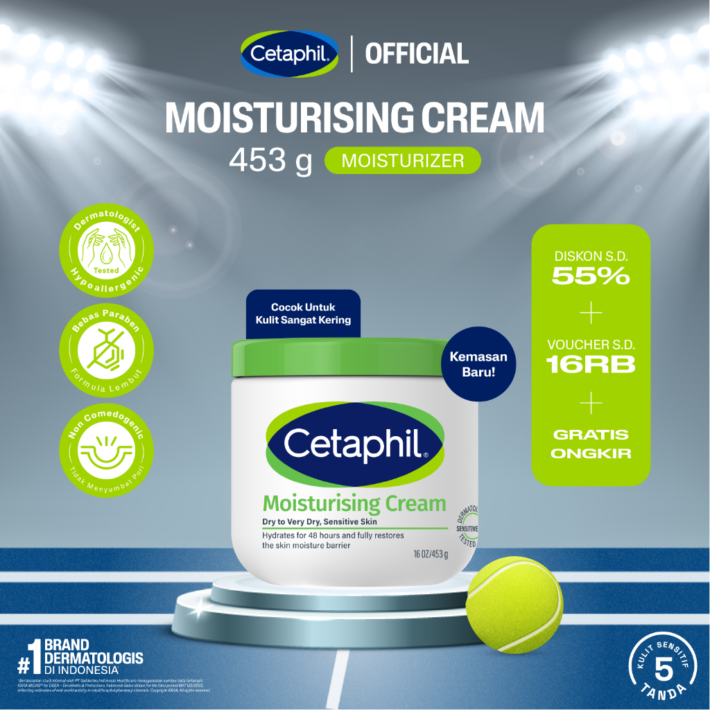 Cetaphil Moisturizing Cream 453g dengan Sunflower Oil, Vitamin E dan Almond Oil Pelembap Wajah & Kulit untuk Kulit Sangat Kering dan Sensitif