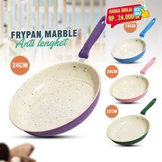 PANCI TEFLON FRYPAN WARNA / MARBLE PAN ANTI LENGKET WAJAN GAGANG 18CM 20CM 22CM 24CM EL