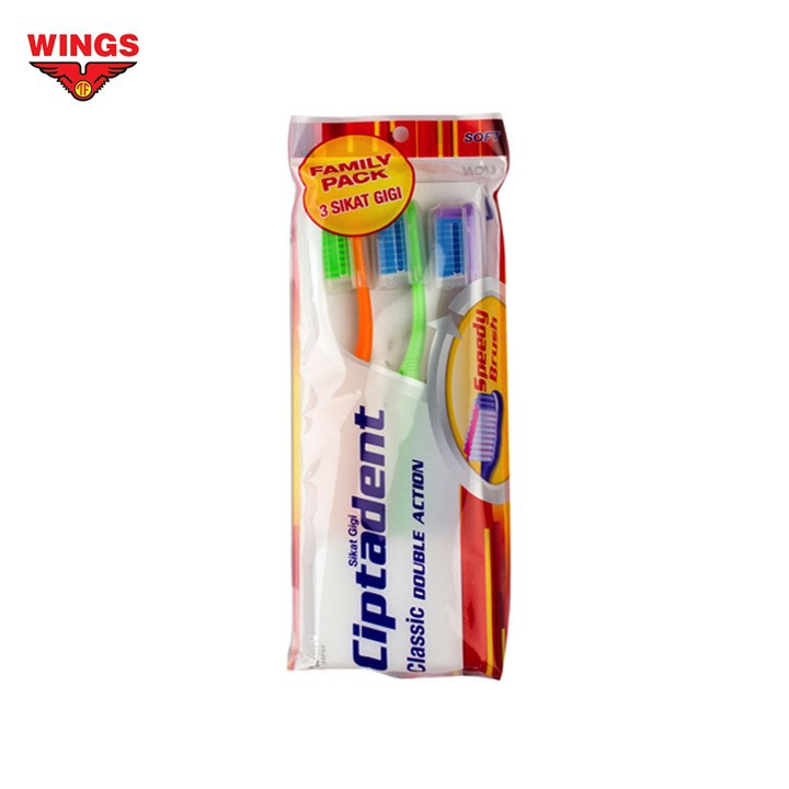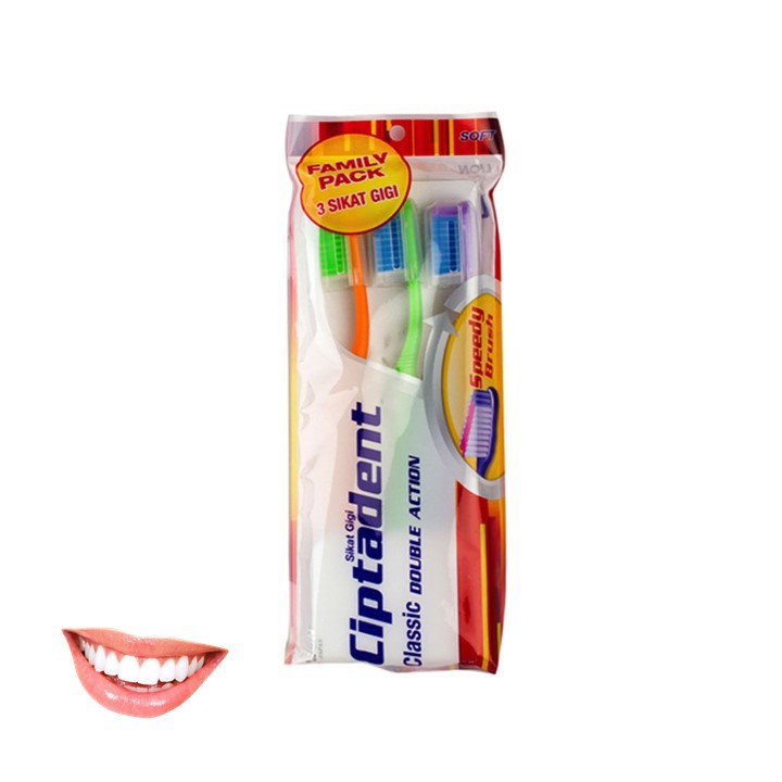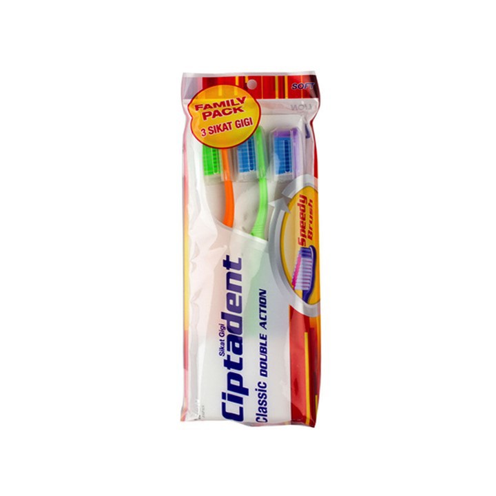 Ciptadent Sikat Gigi Classic Double Action Soft Pack Isi 3 Pcs