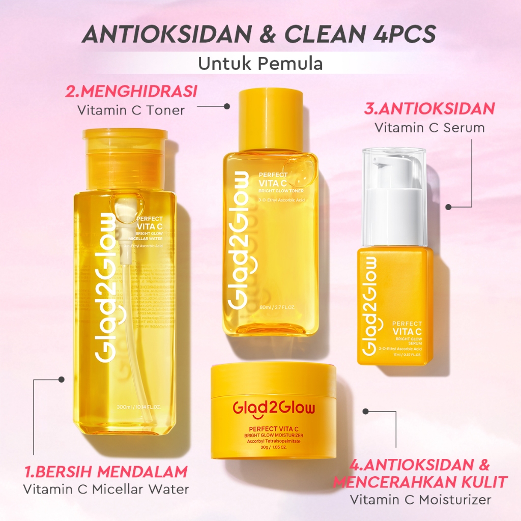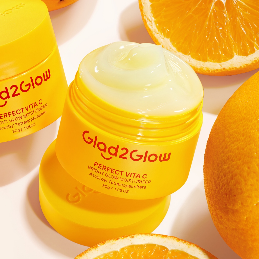 GLAD2GLOW PERFECT VITA C BRIGHT GLOW MOISTURIZER vitamin c Mencerahkan Pemutih Kulit Gel Pelembab Bercahaya Krim Siang dan Malam Ekstrak Delima Asam Lemak Asam Delima Pelembab Esensi Wajah Perawatan g2glow official store