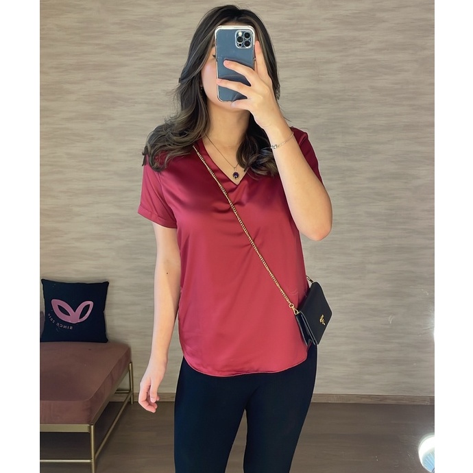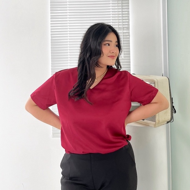Pluffyschoice Fox Blouse Silk Satin Bigsize