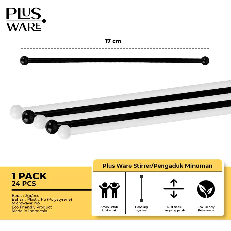 Plusware Pengaduk Stirrer Hitam Putih (24pcs)