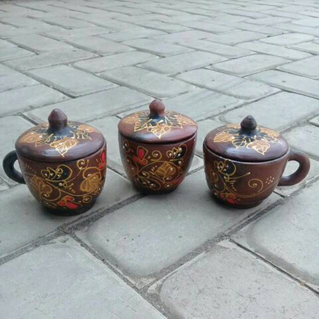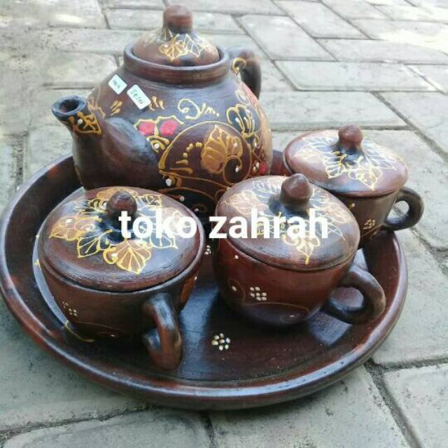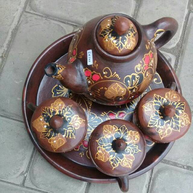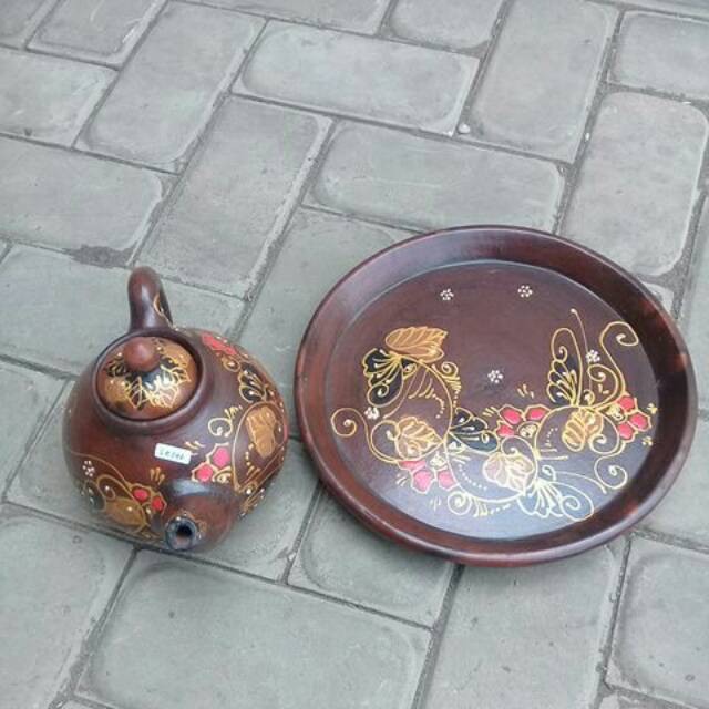 Poci Teh Tanah Liat Batik/Teko Teh Poci set Tanah Liat (batik)+ Peti Kayu