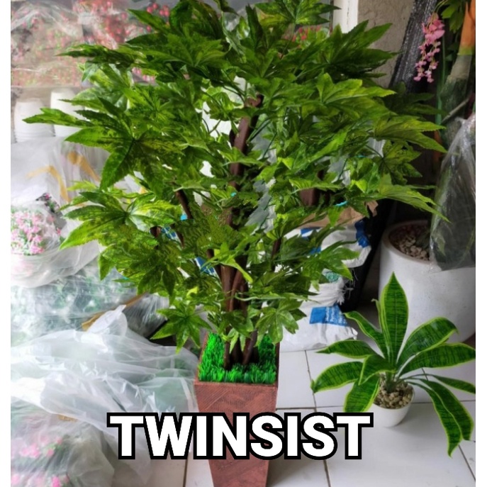 Pohon Maple Jari Plastik Artificial Palsu 120Cm/Hiasan Sudut Ruangan/Bunga Hias Plastik/Dekorasi