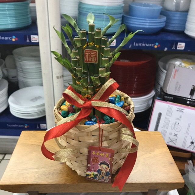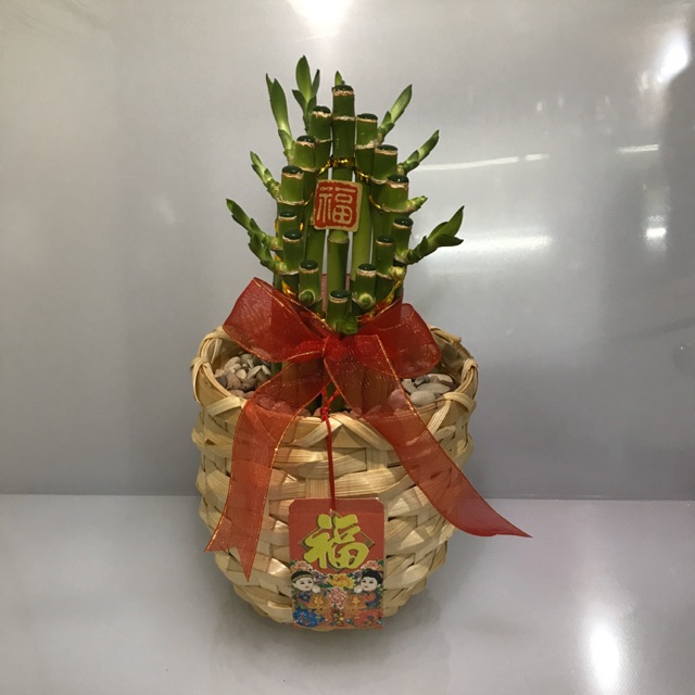 Pohon imlek bambu hoki hiasan imlek pot keranjang indoor plant