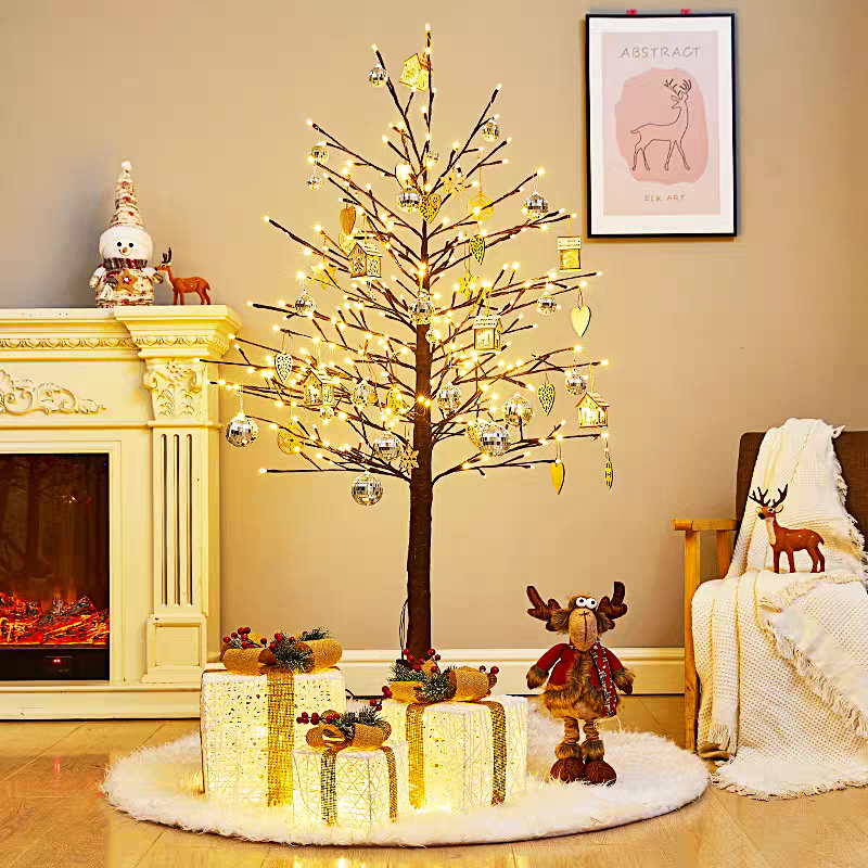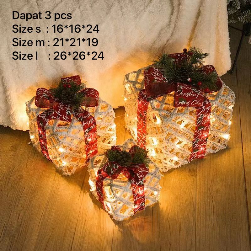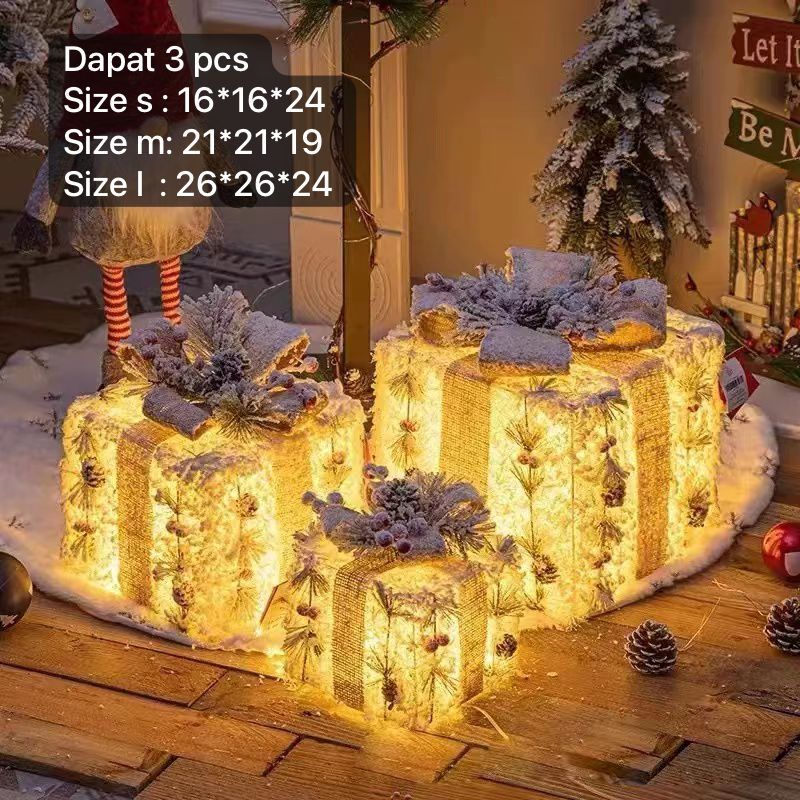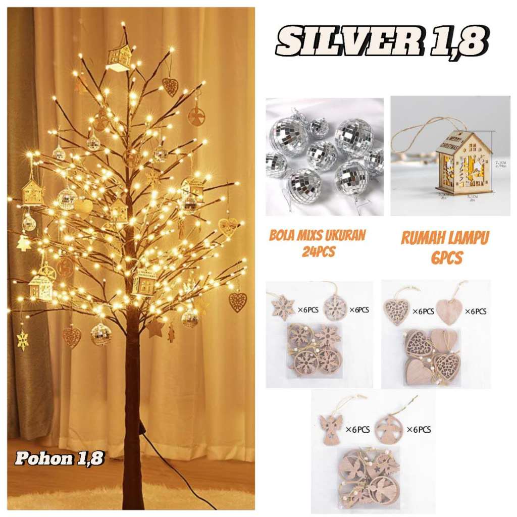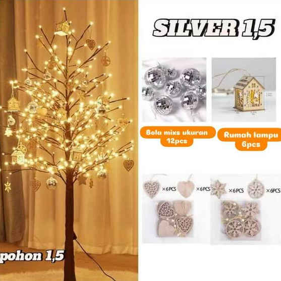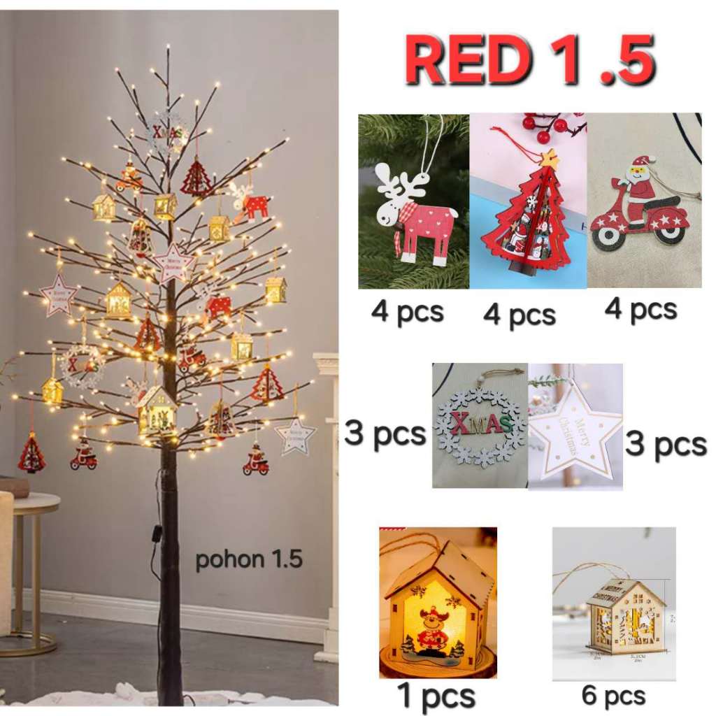 Pohon natal full set dengan lampu LED di setiap tangkai nya + aksesoris