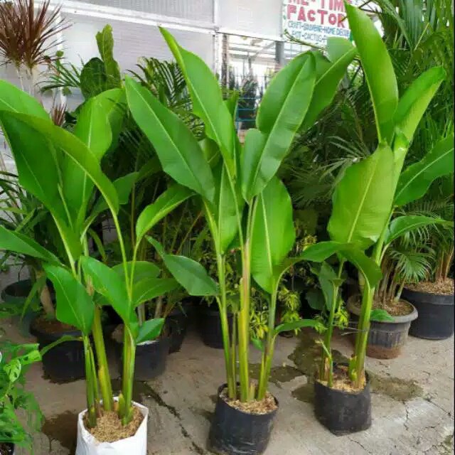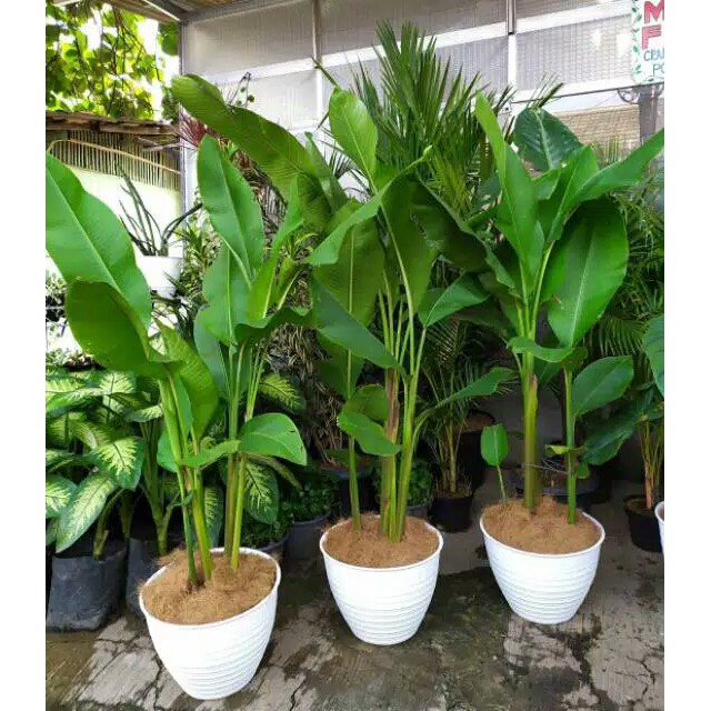 Pohon pisang hias caribay / bihay tinggi 80-100 cm+ pot putih isi 3 pohon