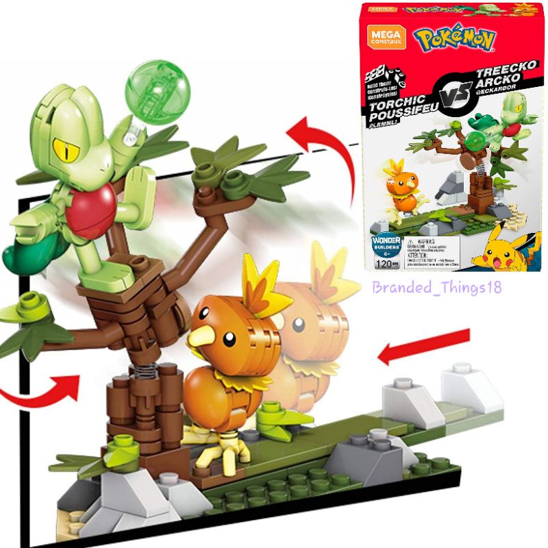 Pokemon Mega Construx Torchic Poussifeu Flemmli vs Treecko Arcko Geckarbor Original Mattel Bricks Balok
