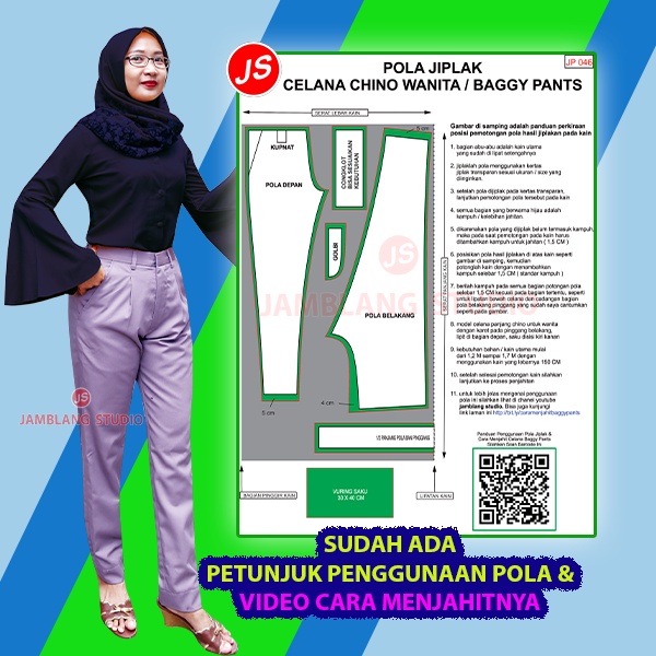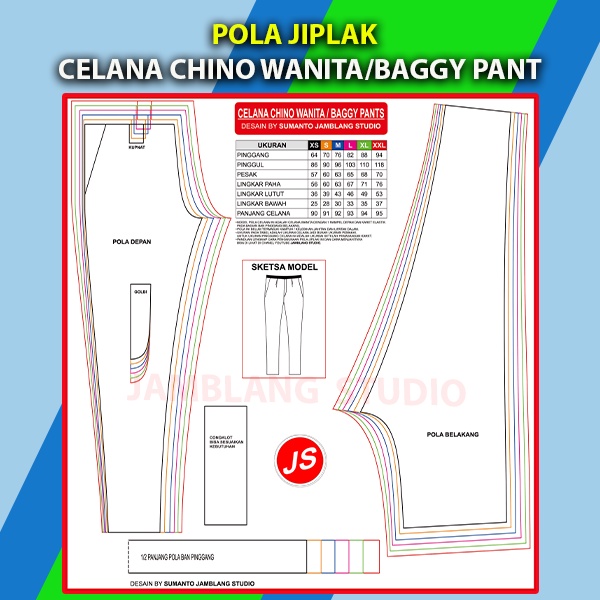 Pola Jiplak Celana Chino Wanita / Baggy Pant [ Pola Baju Jamblang Studio ]