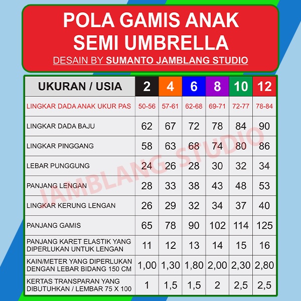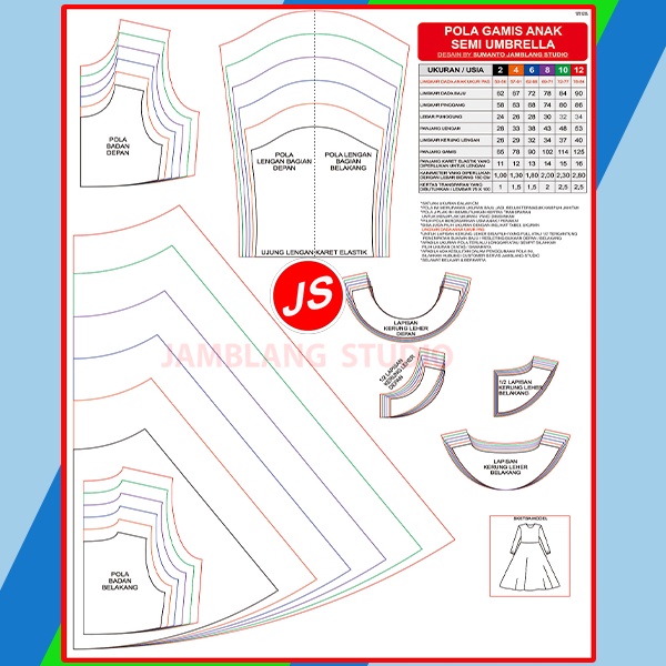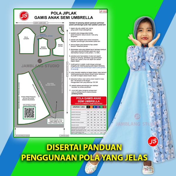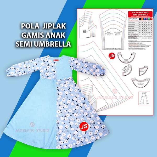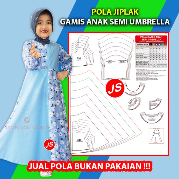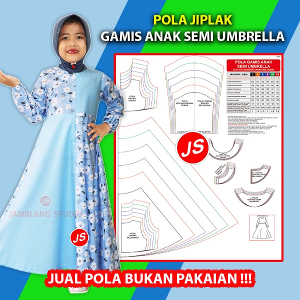 Pola Jiplak Gamis Anak Semi Umbrella Umur 2 ~ 12 Tahun [ Pola Baju Jamblang Studio ]