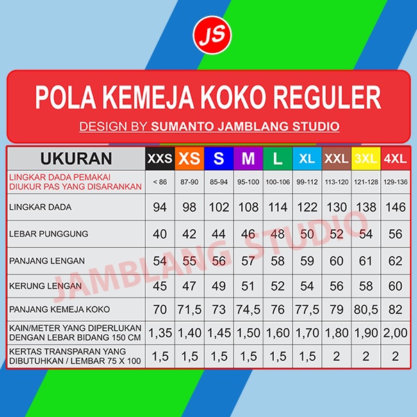Pola Jiplak Kemeja Koko Reguler 9 In 1 [ Pola Baju Jamblang Studio ]