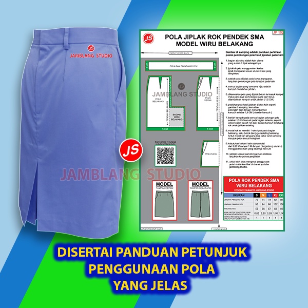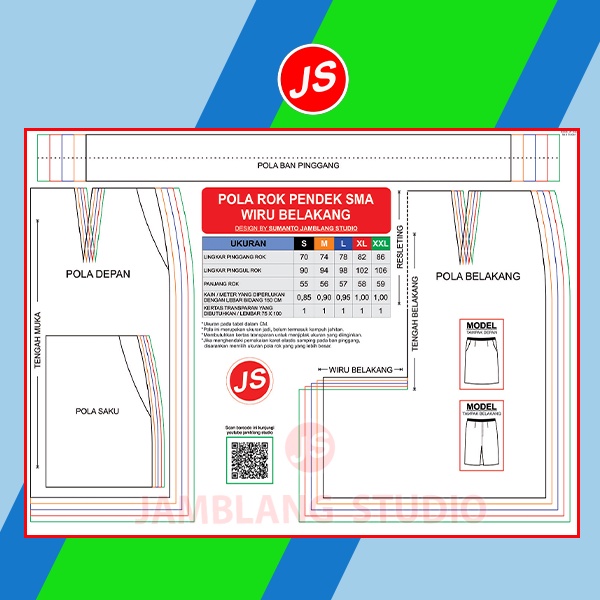 Pola Jiplak Rok Pendek SMA Wiru Belakang [ Pola Baju Jamblang Studio ]