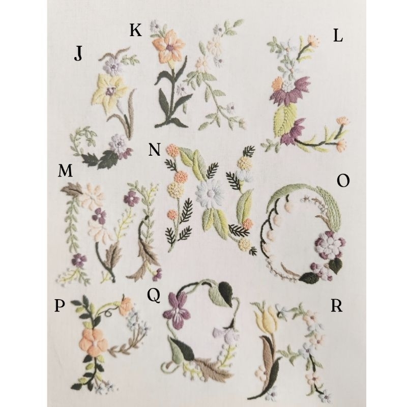 Pola sulam huruf/alfabet (floral)