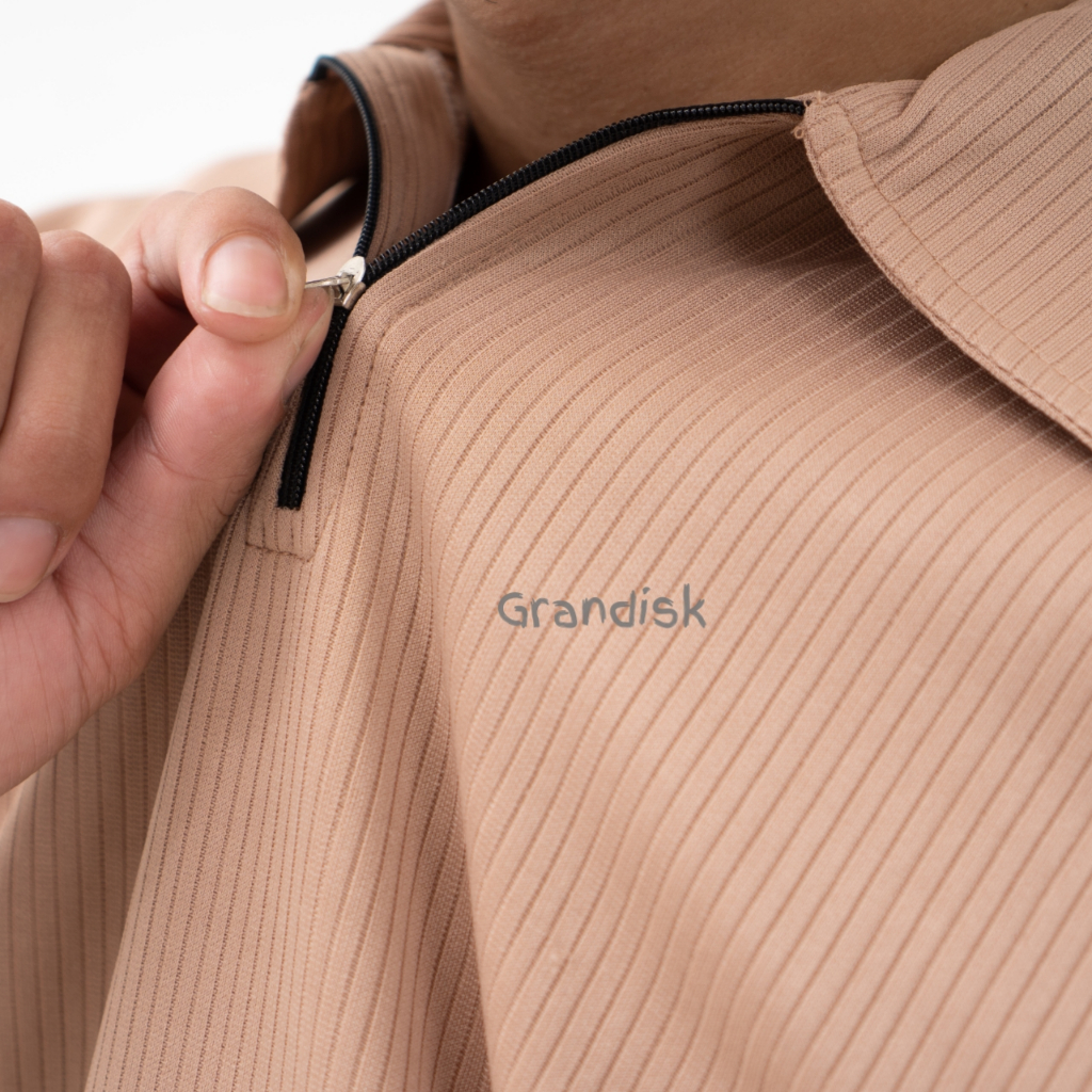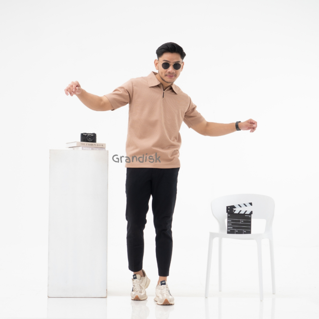 Polo Shirt Knit Motif Salur Kecil Zipper Half Zipp Pria / Baju Korean Knit Kerah Resleting Garis Kecil Cutting Slim Fit Tangan Pendek.