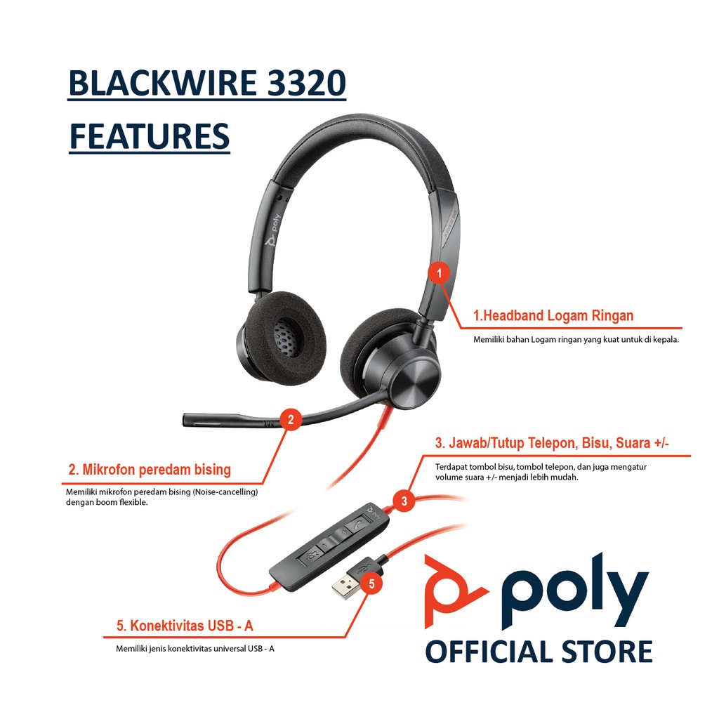 Poly BLACKWIRE 3320 Headset USB-A Stereo
